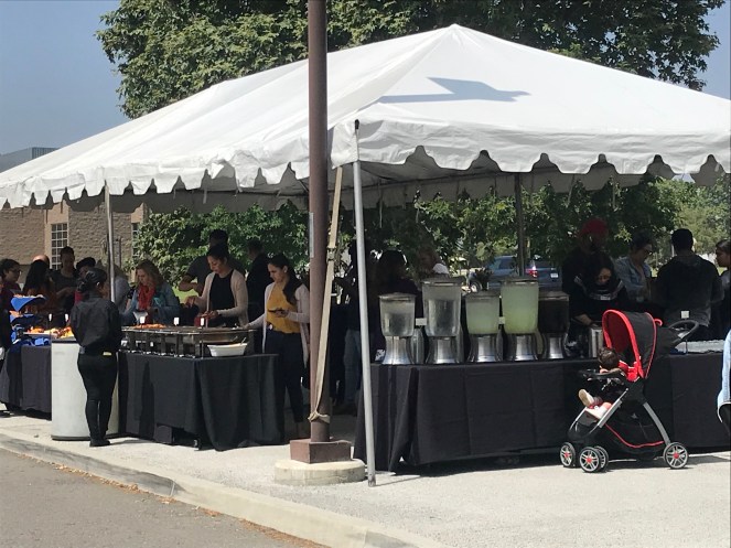 Going into this event, I didn’t really know what to expect. I didn’t know if this would be a big event or something more intimate for the elites of the University. But upon arriving to the event, we came across some chairs and a small podium placed conveniently under a shade as it was a hot summer day. There was also multiple tables with food and drinks provided by the caterers who were in attendance.